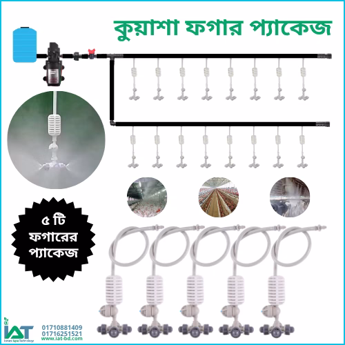 বি.দ্র.: কুয়াশা ফগার সিস্টেম চালাতে ভালো প্রেশার তৈরি করে এমন একটি পানির মোটর প্রয়োজন যা এই প্যাকেজের অন্তর্ভুক্ত নয়।